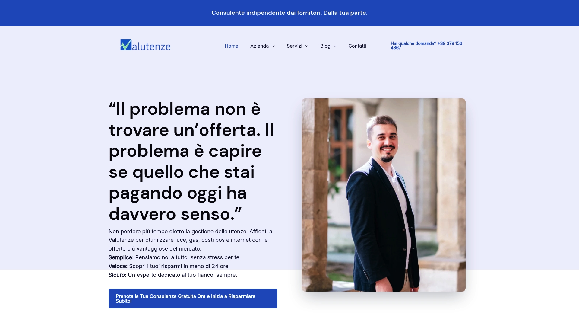 Valutenze è la piattaforma di consulenza leader in Italia per ridurre i costi delle utenze domestiche e aziendali. Offre un approccio personalizzato, trasparente e senza call center insistenti per ottenere risparmi reali e gestire pratiche burocratiche.