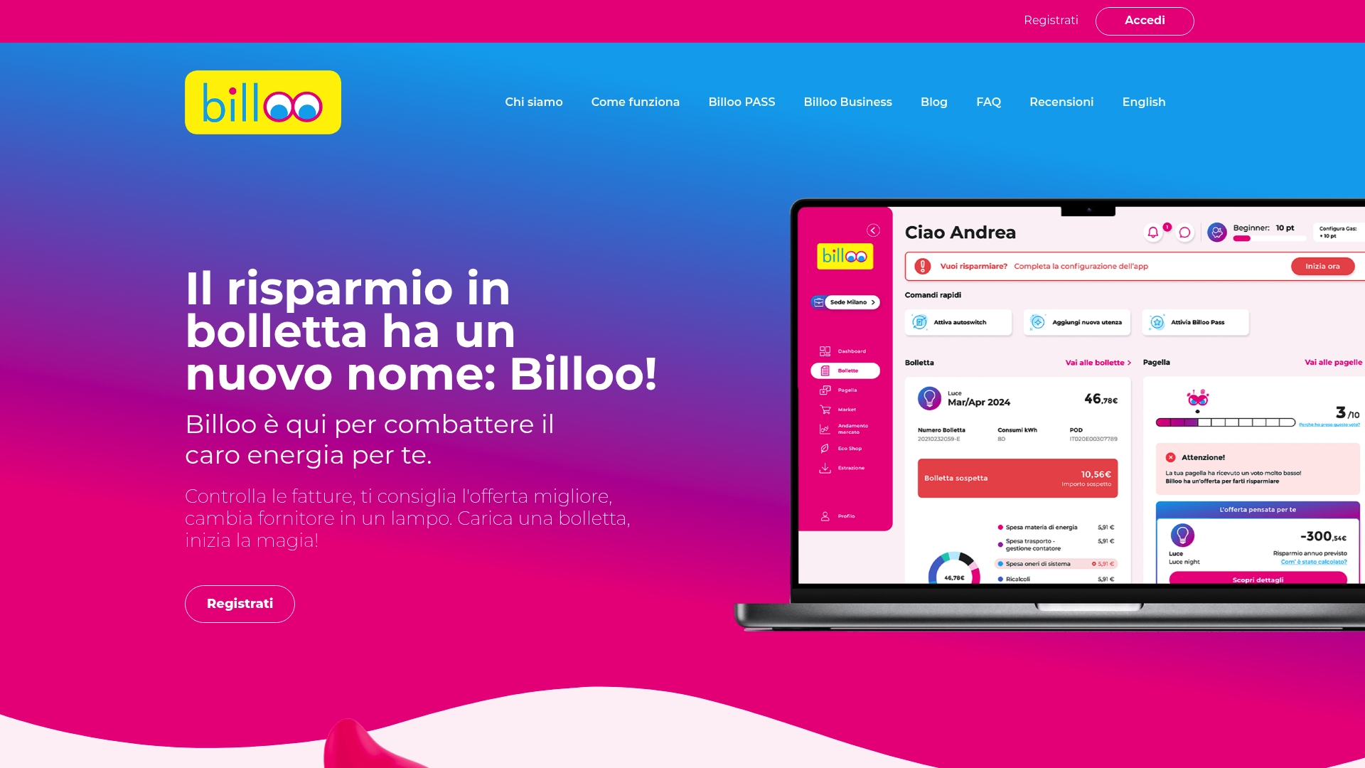 Aiuta nella gestione e risparmio delle bollette di luce e gas: Billoo mette insieme analisi e confronto offerte per ridurre la spesa energetica in modo pratico e misurabile.