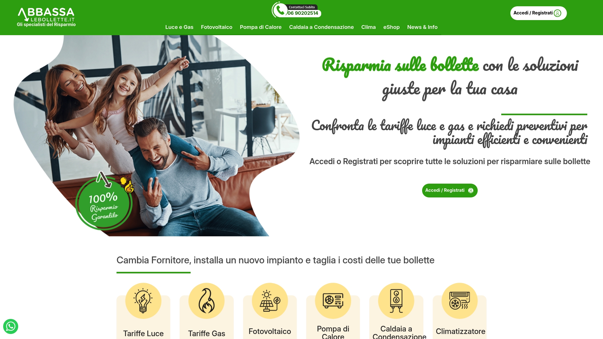 La piattaforma propone confronto tariffe per luce e gas, preventivi per impianti fotovoltaici e pompe di calore, e consulenze gratuite dedicate a esigenze domestiche e aziendali. Include inoltre un simulatore di risparmio energetico e una sezione con recensioni di clienti.