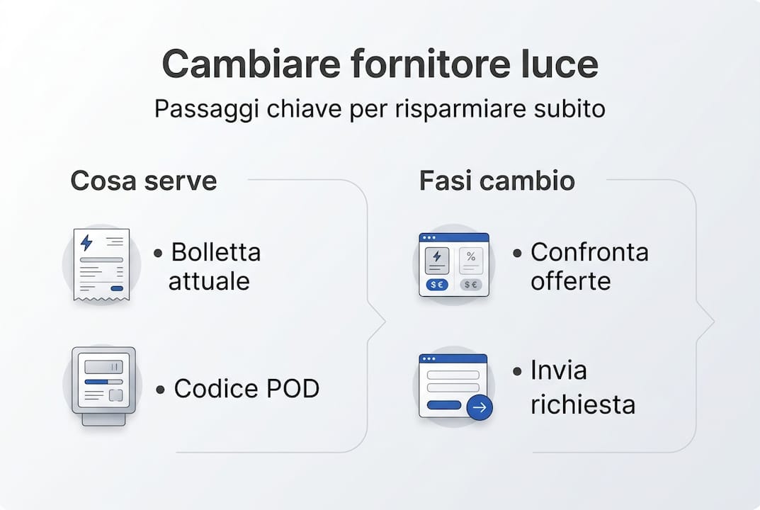 | Documenti necessari | Bolletta attuale, codice POD e dati personali sono indispensabili per attivare il cambio. |