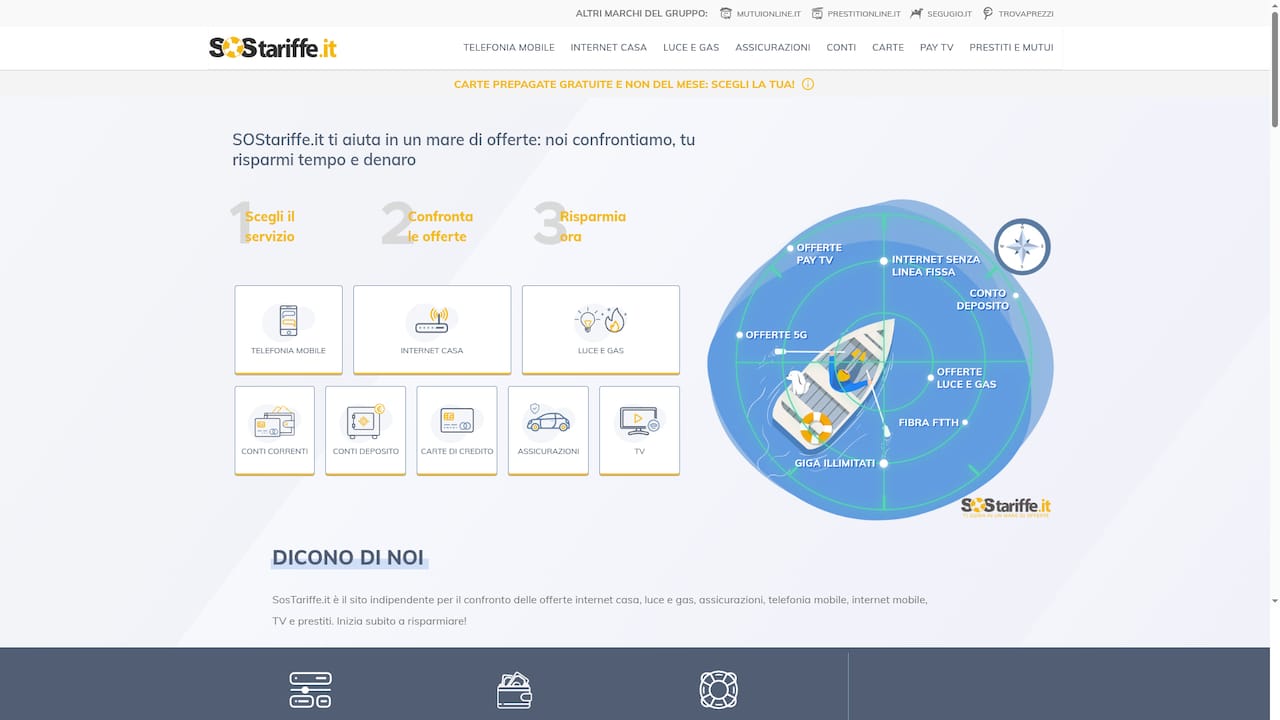 SOStariffe.it è un comparatore indipendente che aiuta a risparmiare tempo e denaro confrontando utenze e prodotti finanziari. Offre un servizio gratuito con supporto e aggiornamenti in tempo reale per scegliere offerte più vantaggiose.