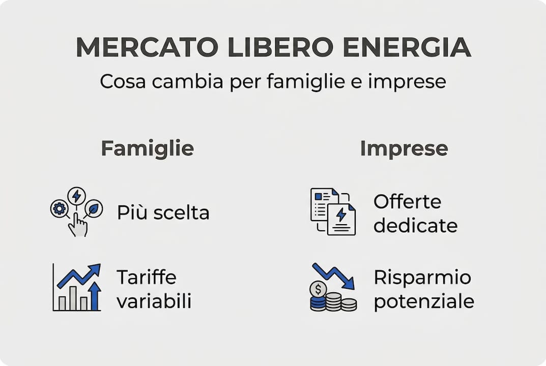 | Libertà di scelta | Il mercato libero permette a famiglie e aziende di scegliere il fornitore più adatto. |