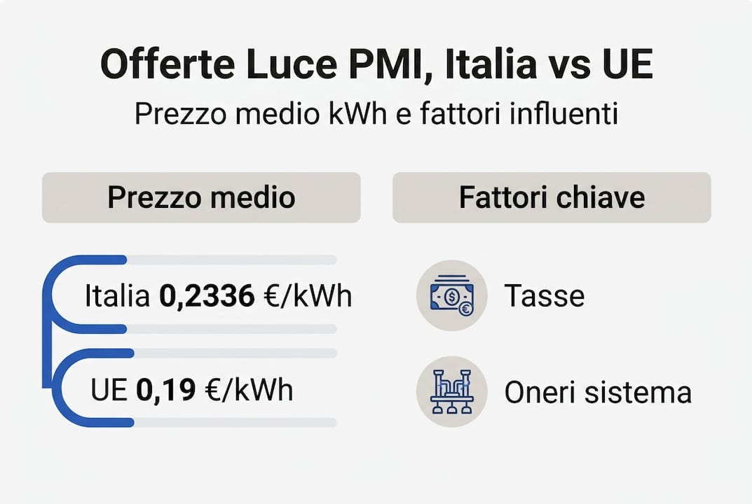 | Costi superiori alla media UE | Le PMI italiane pagano circa il 23% in più per l'energia elettrica rispetto alla media europea. |
